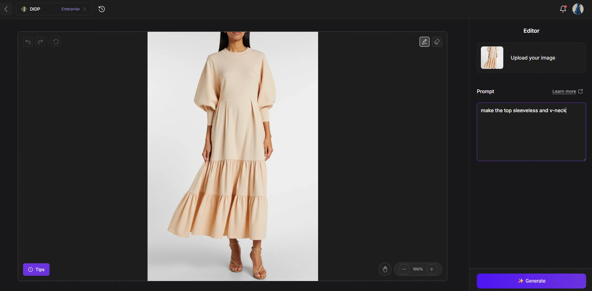 Garment Style Changes: AI excels at adding/removing sleeves, adjusting hemlines, and changing collar shapes while maintaining natural fabric flow.