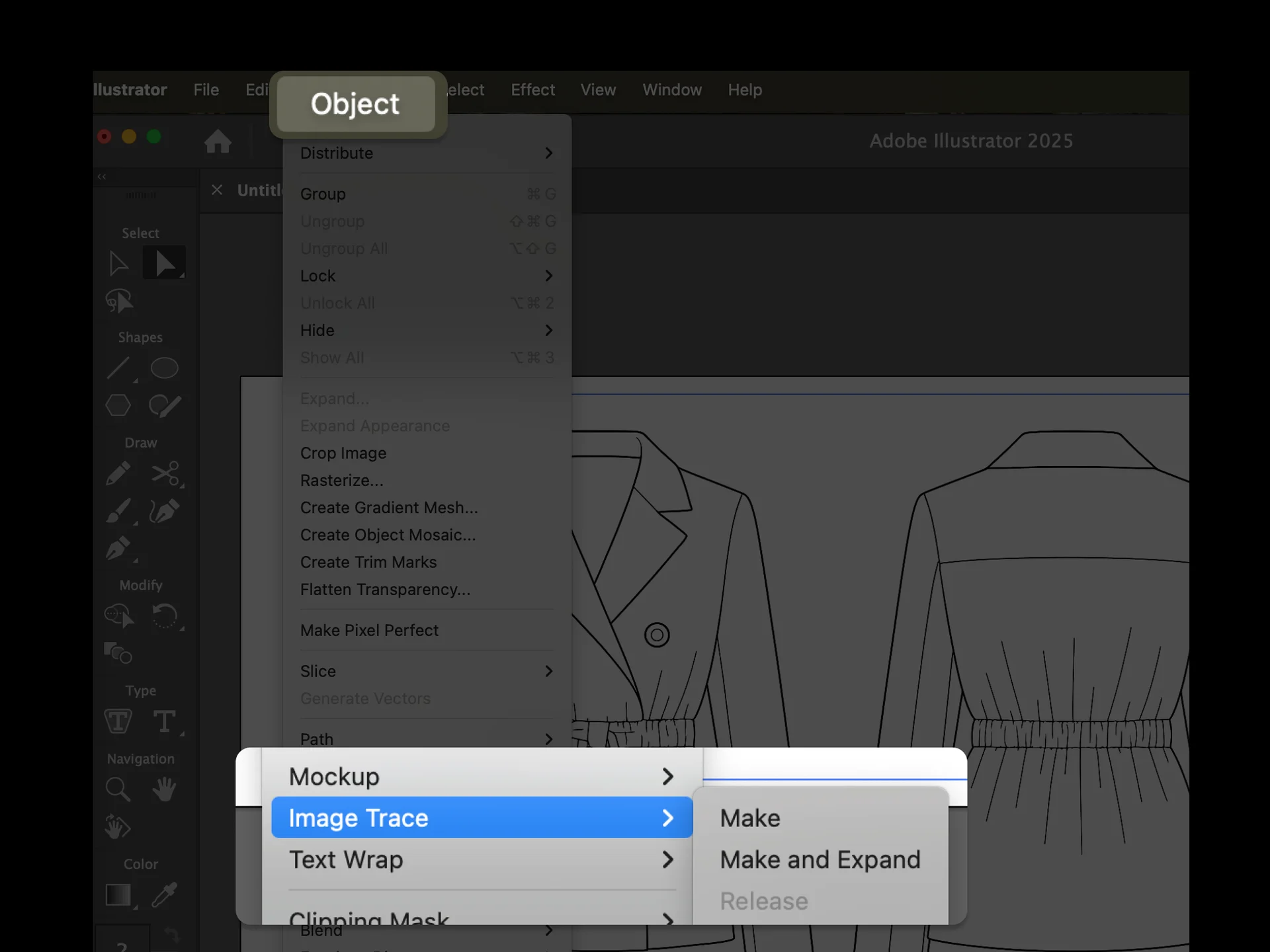 1️⃣ First, getting started with AI sketch generation2️⃣ Importing and preparing in Adobe Illustrator3️⃣ Then go to Window > Object > Image Trace4️⃣ Configuring image trace settingsAfter expansion, your image is now composed of individual line segments that can be edited independently. This is where you can really customise your technical flat.1️⃣ First, getting started with AI sketch generation
