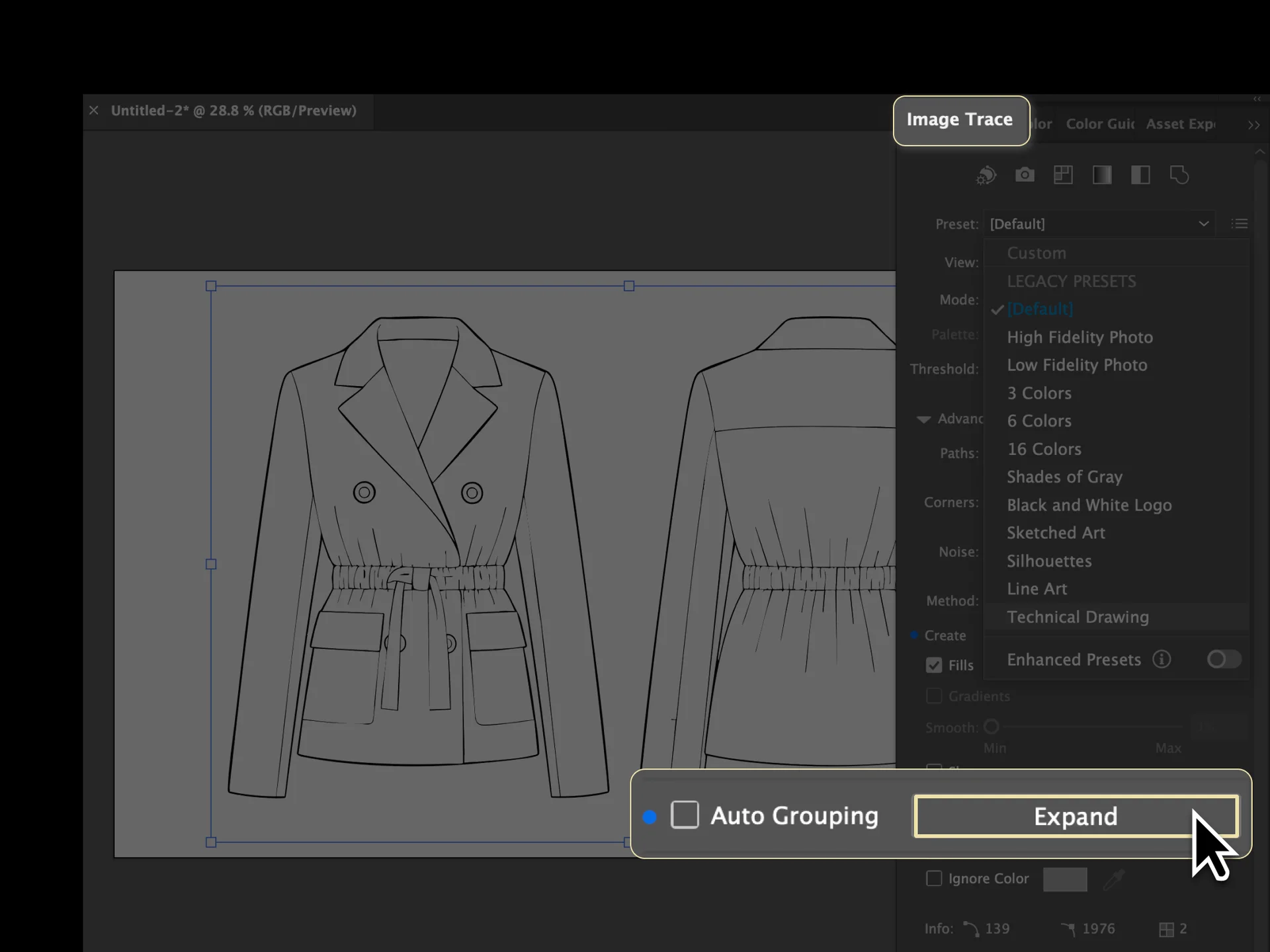 Expandto convert the traced image into editable vector paths.